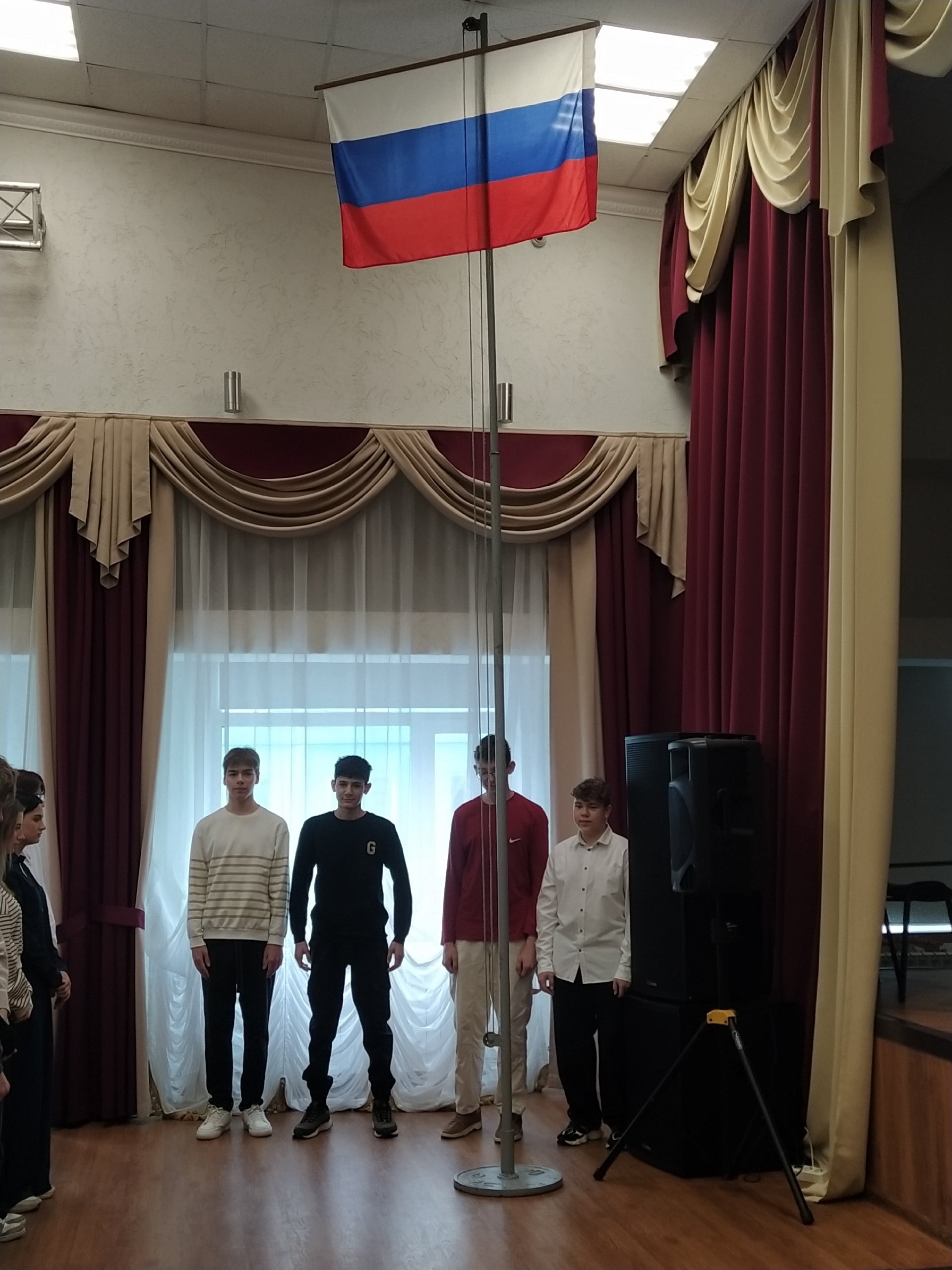 Каждая неделя учебного года начинается в 8.00 с поднятия Государственного флага под Гимн Российской Федерации